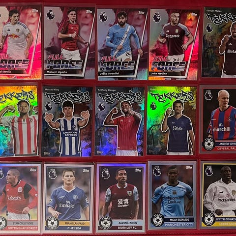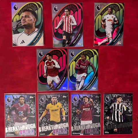 Topps Premier League 2025/26 -inserttejä 0,60€/kpl.