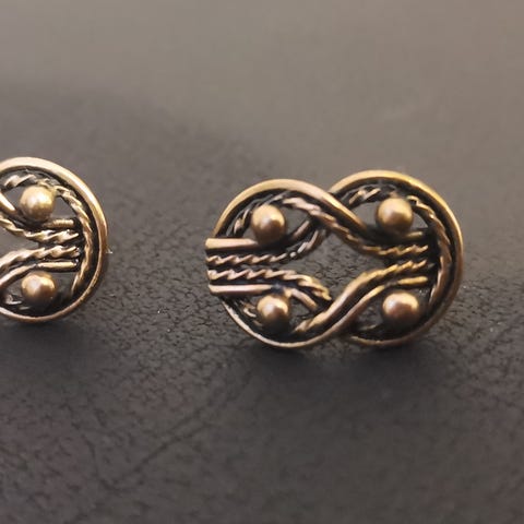 Kalevala Korun Kaukolan Kekomäen korvakorut pronssi. Postitus (6€) tai nouto Raahesta. Voidaan toimittaa sovitusti Oulun seudulle.