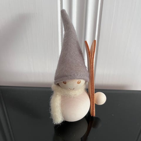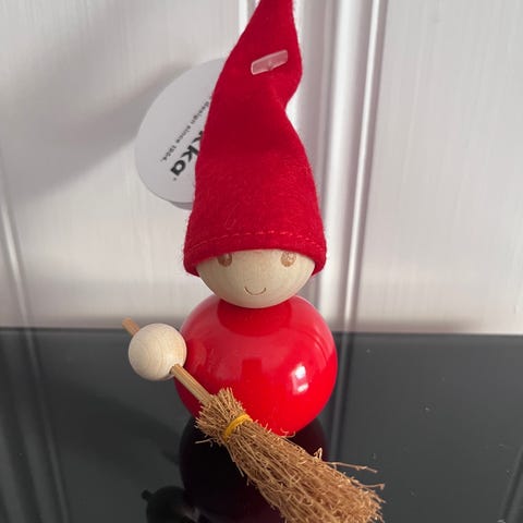 Myydään Aarikan tonttu, jolla kello kädessä.