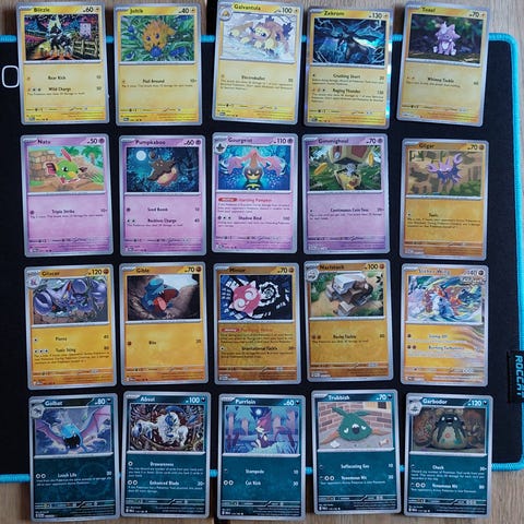 Myydään Paldea Evolved Pokemon kortteja 20kpl. Hinta yhteensä 9,50e tai yksittäin ostettuna hinnat alla.
