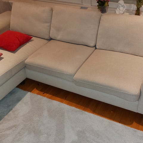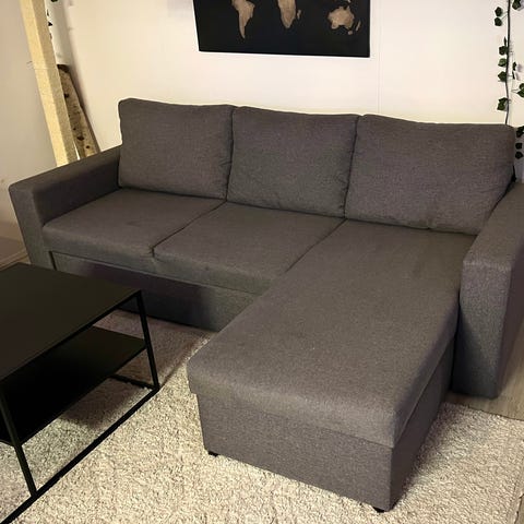 Divaanisohva, jossa levitettävä osa yöpymistä varten. Divaaniosan alta löytyy säilytystilaa. Kangas ehjä kaikinpuolin, ainut näkyvä virhe on säilytistilan pohjalevyssä oleva halkeama. Ei vaikuta käyttöön millään tapaa.
