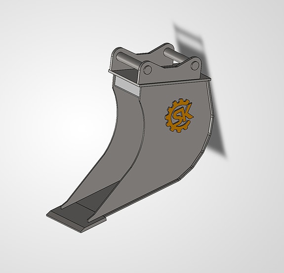 Kotimainen S40 kaapelikauha 300 mm leveällä Hardox 500 huulilevyllä. Kauha on valmistettu kantta ja kiinnikettä lukuun ottamatta kulutusteräksestä, jolla saadaan kauhalle erinomainen kulutuskestävyys sekä turhaa painoa pois.
