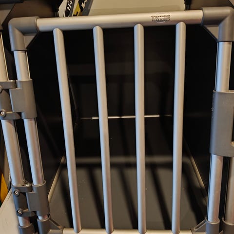 Laadukas Trixie koirakalteri, joka kiinnittyy niskatukien rautoihin. Säätyy joka suuntaan (ks kuva). Vain nouto.