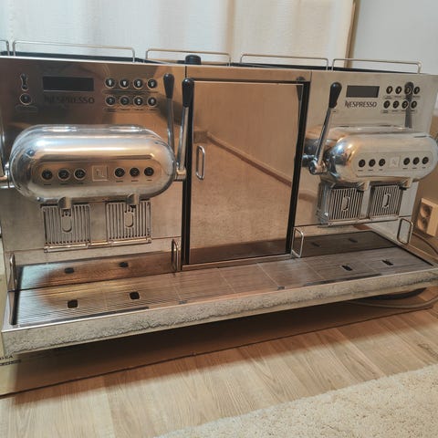 Myydään käytetty Nespresso Aguila AG440 -ammattilaiskahvikone kovaan käyttöön. Sopii erinomaisesti esim. ravintolaan, hotelliin, kokoustiloihin tai suureen toimistoon, jossa kahvia kuluu paljon ja halutaan nopea, tasalaatuinen palvelu.