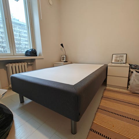 Hyvässä ja siistissä kunnossa oleva 120cm leveä sänky, alunperin ostettu Sotkasta. Ei ole käytönjälkiä/ moitteita. Ilman sijauspatjaa 100€ ja sijauspatjan kanssa 120€. Nouto Meilahdesta.