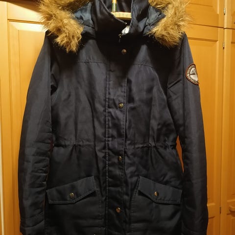 Tekoturkkis vuorella oleva Reiman uuden veroinen talvitakki, kai-kai 60, olka-helma 115.