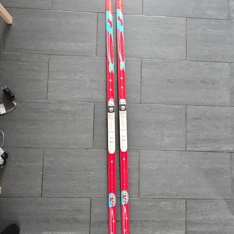 185 cm perinteisen sukset. Hiihdetty on ja ikääkin jo, mutta kyllä näillä vielä päästelee menemään. NNN-siteet.