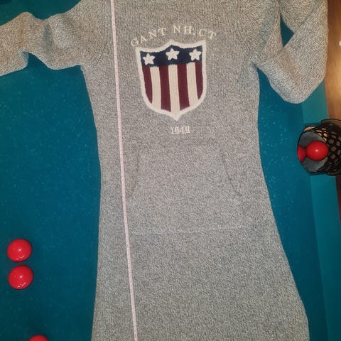 Koko: S ( kainalo-kainalo 50 cm , joustaa 70 cm asti , niska-helma 130 cm ja kainalo-hihansuu 43 cm , joustaa paljon kauttaaltaan )