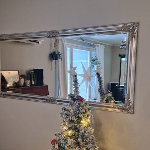 Myydään hopea reunuksinen peili. Iso peili. Jyskistä ostettu. Hyvässä kunnossa. Leveys: 72cm ja korkeus: 162cm. Vain nouto ja omat kantajat mukaan.