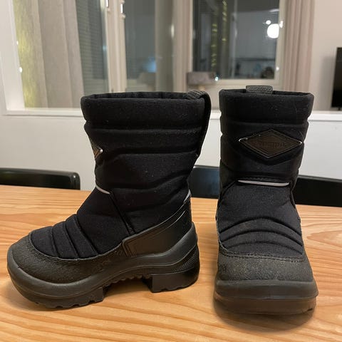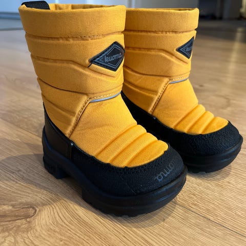 Hyväkuntoiset kuomat koko 22, unisex. Kengissä on kirkkaanvihreä väri ja mustat pohjat. Sisävuori on lämmin ja sopii kylmiin olosuhteisiin.
