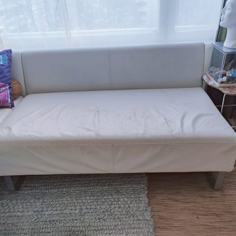 Tapio Anttilan suunnittelema Awa sohva (2 moduulia), valkoinen aito nahka. Osat saa myös erilleen, sekä yhteen saranalla.