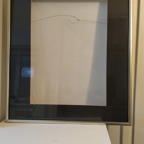 Korkealaatuinen kehys, koko 50 x 70 cm. Metalli/alumiini kehys, lasi aitoa lasia, takapuolella tukevat kiinnikkeet. Voi ripustaa vaaka- tai pystysuoraan.