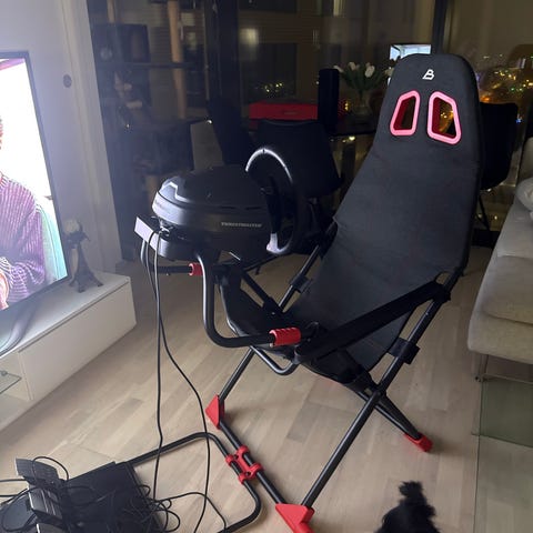 Next Level Racing pelituoli mustassa värissä. Sopii pelaamiseen ja simulaattoreihin, tarjoaa tukea ja mukavuutta. Valmistettu kestävästä materiaalista. Helppo taitella pieneen tilaan ohjaimineen, kun ei ajele. Kohtuu jämäkkä vaihtoehto. Vaihto rahaan tai 32+ gsync yhteensopivaan näyttöön.