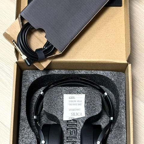 Lähes käyttämättömät. Custom johto 2m pelkkä johto maksoi 150e Briteistä. Alkuperäinen johto on ihan hirveä, mutta tallessa. Laatikko tallessa. Juuri vaihdetut pehmusteet. Vanhatkin pehmusteet puhtaat, mutta repeytyneet yhdestä kohtaa.