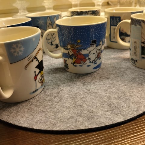 Mukaan tulevat Muumi Merituuli- ei platina,Moomin's Day 2021 & Moomin's Day 2025. Käyttämättömät,olleet vain esillä kuviin. Ei eläin talous. Tuonti onnistuu,Lahti,Hollola,Mäntsälä,Kärkölä.Tarjouksia otetaan vastaan👋