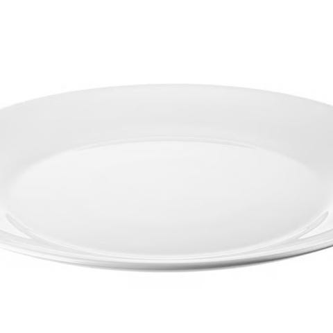 Viisi IKEAn lautasta, halkaisija 21 cm, valkoinen/vaalean harmaa väri.