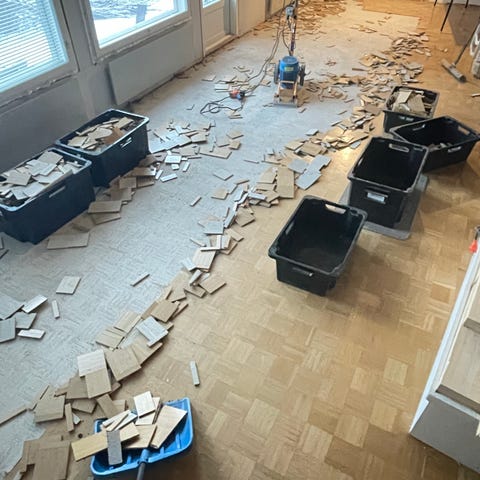 Käytettyä parkettia, sävy ilmeisesti tammi? Irrotettu n. 3x3 m kokoisesta huoneesta. Naarmuja ja maalitahroja on. Saa hakea Jollaksesta jos jollain on käyttöä.