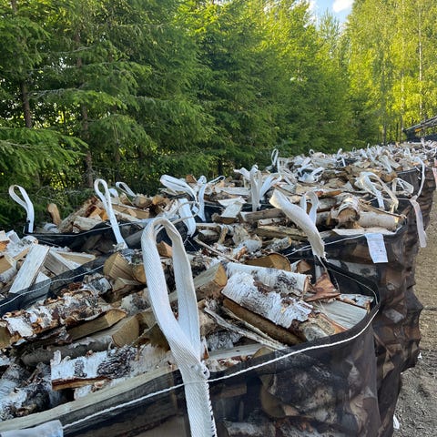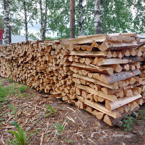 Keväällä 2025 tehtyjä halkoja joiden pituus on noin metri. Hinnasta voidaan neuvotella