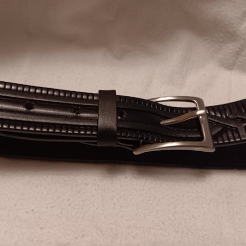 Siitä jollekkin erittäin siistissä kunnossa oleva musta nahkavyö. Vyössä on iso hopea solki joka näyttää erittäin siistiltä. Hp 20€ saa näyttää oman näkemyksen hinnasta.