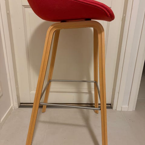 HAYn suosittu AAS 38 -baarituoli. Tuoli sopii mainiosti keittiösaarekkeen, korkean neuvottelupöydän ääreen tai ravintolakäyttöön. Pehmeälinjainen istuin on erittäin mukava ja linjakkaat jalat viimeistelevät lookin. Suunnittelijana Hee Welling.