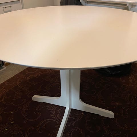 4 hengen täyspuinen ruokailupöytä. Pinnassa muutama jälki, näkyy kuvassa.