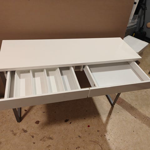Nyt joutais vanha, mutta erittäin kaunis meikkipöytä isohkolla ja raskaalla peilillä.