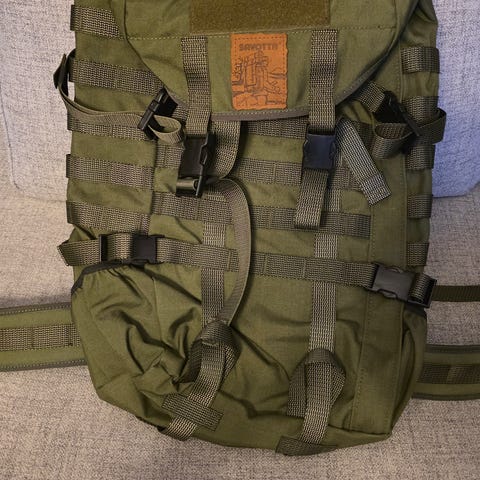 Kompaktin kokoinen,noin 15 litrainen asereppu. Mukaan mahtuu eväät ja vaihtovaatteet.