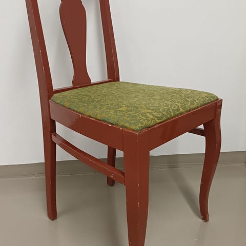Myydään siisti ja ehjä, tukeva koivutuoli. Korkeus 44,5, syvyys 41 ja leveys 42,5 cm.