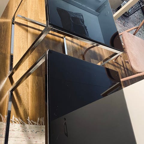 Monikäyttöiset pöydät, sillä ne menevät myös sisäkkäin. Ovat kivat neliön malliset. Sopivat hyvin moderniin sisustukseen.