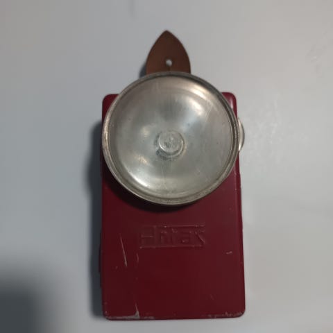 Toimii 4,5 V paristolla. Sininen taskulamppu. Aito.