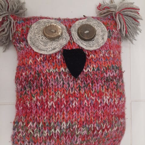Musta, käsin tehty ja jämäkkä solmu-koristetyyny. Huom! Värissä paikoitellen haalistumaa, joka huomioitu hinnassa. Eläintalous.