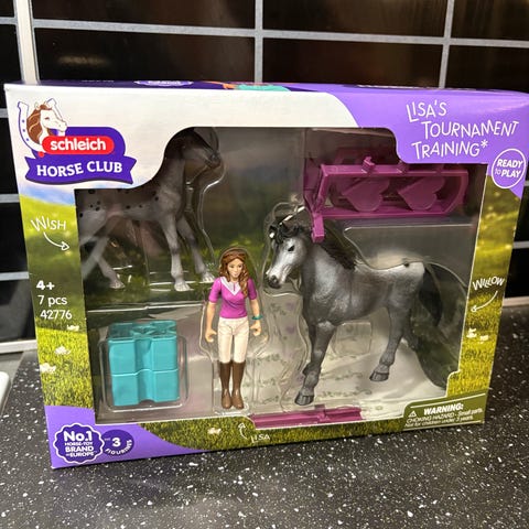 Schleich Horse Club Lisa's Tournament Training lasten lelu, sisältää hevosen ja hahmon. Sopii yli 4-vuotiaille lapsille. Pakkaus sisältää 7 osaa, jotka mahdollistavat erilaiset leikkimahdollisuudet hevosten ja ratsastuksen maailmassa.