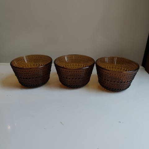 Uudet Iittala Kastehelmi kulhot 6 kpl pellava värissä tilavuus 23 cl. Jääneet käyttämättä astia paljouden johdosta. Yhden kipon ovh kaupassa 20.90e. Kunnoltaan uudet.