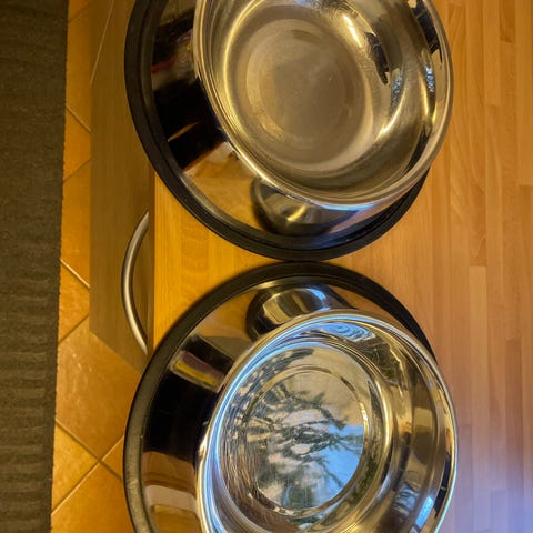 2kpl Teräksiset ruoka-/vesikipot isolle koiralle. Olleet pari kertaa reissussa mukana. Kevyet ja konepestävät. Silikonipohja pitää paikallaan. Menevät sisäkkäin. Mitat 7x24,5cm. Tilavuus 2,65l. Myydään koiran menettämisen takia. Yhteensä 8e