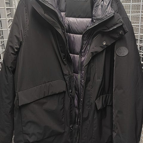 Huom! Viimeisessä kuvassa näkyvä kaupan malli on yhtä osastoa pidempi – myytävä takki on lyhyempi