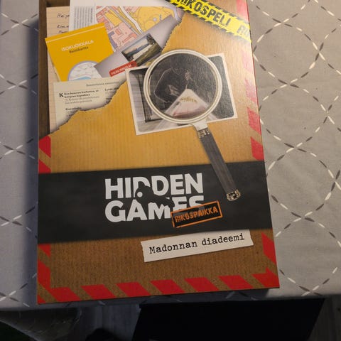 Myydään kuvan Hidden Games Madonnan diadeemi pulmapeli. Peli on pelattu läpi, mutta siihen ei ole tehty merkintöjä ja kaikki osat ovat tallella. Peli on hauska rikospeli, joka vaatii puhelimen, sähköpostin ja nettiyhteyden, jotta sen voi pelata läpi.