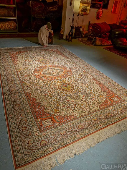 Kaikki Galleria M -matot ovat aitoja käsinsolmittuja villa- ja silkkimattoja.