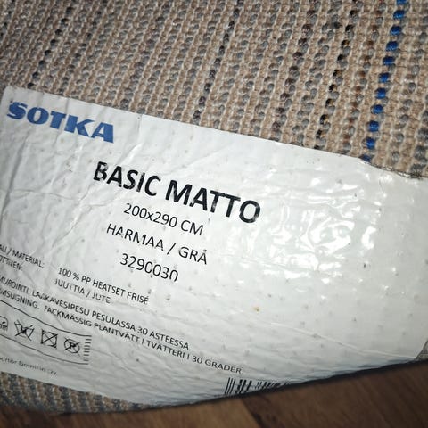 Hyväkuntoinen matto nukkamaato. Juuttipohja. Sopiiko vaikka eteiseen. Paljon löytöjä myynnissä kannattaa kurkata muutkin myynti ilmoitukset ja tarjota!