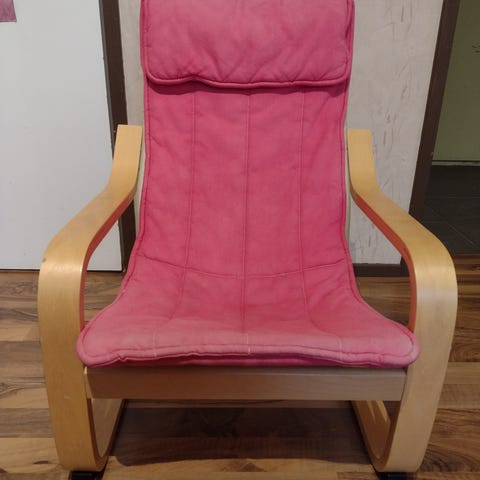 Annetaan kaksi kappaletta lasten nojatuoleja. Punainen ja toinen musta samanlainen. Istuinosan leveys 33cm ja syvyys 31cm. Vain nouto.