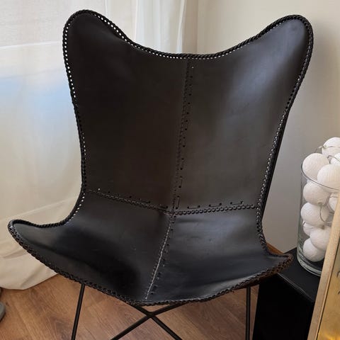 Hyväkuntoinen ja tukeva lepakkotuoli.