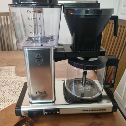 Nyt lähtisi lähes uudenveroinen Moccamaster Optio (kiillotettu hopea) uuteen kotiin. Ostettu 14.10.25, kuitti on.