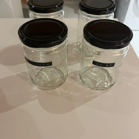 Myydään yhdessä kauniit säilytyspurkit, joita voi käyttää esimerkiksi teen tai herkkujen säilytykseen. Yhteishinta.