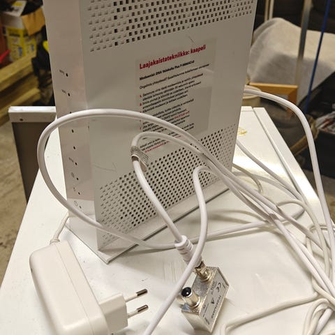 Virheetön, valkoinen väri, varustettu liitännöillä Dnan kaapeliverkkoon kytkemistä varten. Sisältää virtalähdekaapelin ja verkkokaapelin. Vain nouto Oulusta.