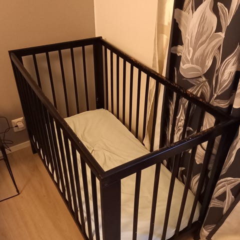 Myydään tukeva Brio-pinnasänky; p. 124 cm, s. 66 cm, k. 91cm. Mukana uudenveroinen vauvan Jysk-patja sekä koko sängyn kiertävä MiniMys-reunapehmuste. Sängyssä kaksi nukkumakorkeutta. Pieniä käytönjälkiä, yleisesti siistikuntoinen. Yhdessä nurkassa on pienellä alueella isompaa kulumaa kuvanmukaisesti, mutta peittyvät maalilla. Kokonaisuus ollut mummolakäytössä. Ei eläintalous. Haettavissa joko Karttulasta tai Kuopiosta.