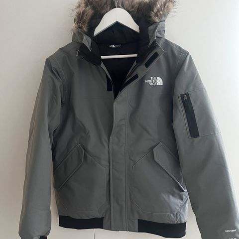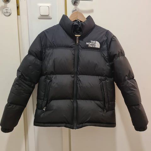 Lämmin untuvatakki, korkea kaulus, huppu, edessä napilliset taskut. Kunnossa ei moitteita. Ostettu Stocmannilta. Koko poikien L, mikä lienee n. 150-160 cm.