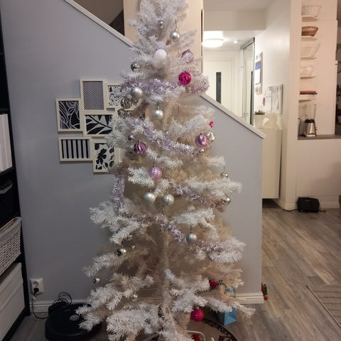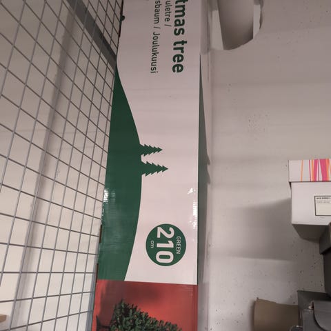 Myytävänä vihreä 210cm korkea tekokuusi.