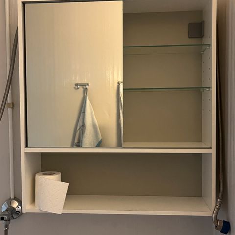 Ikea Lilllången -kaappi kahdella lasihyllyllä.