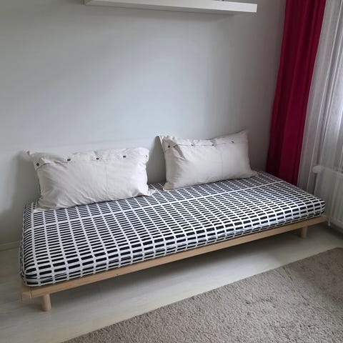 Mukaan tulee Ikean puiset patjan alustat.