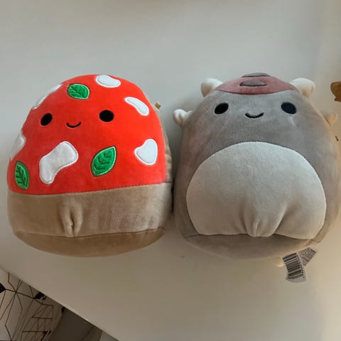 Squishmallows lasten pehmolelut, yksi vihreä possu ja yksi sininen lintu. Pehmolelujen koko on lapsille sopiva, materiaali pehmeä ja miellyttävä koskettaa. Nouto Kuivasrannasta.