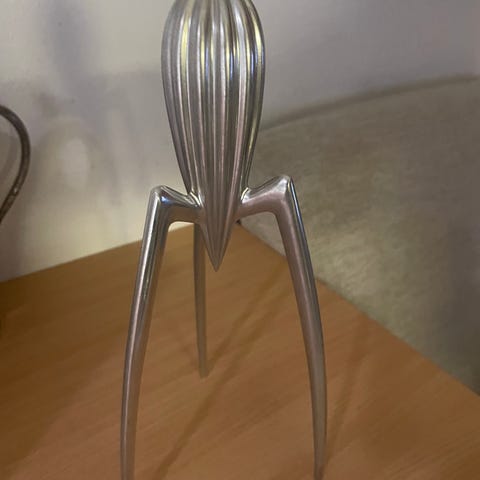 Upea, teräksenvärinen sitruunanpuristin. Ollut vain keittiön koristeena.
